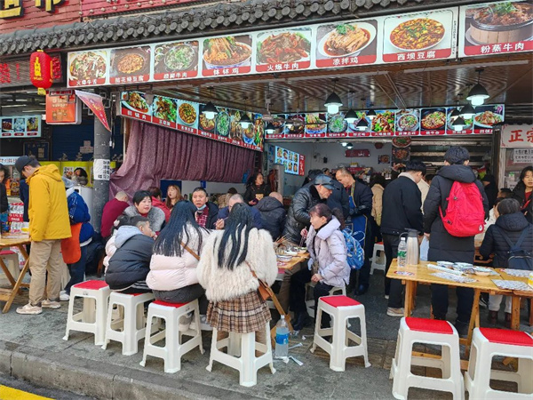 “我是成都人,我们是专门自驾过来吃美食的。身边很多成都的朋友都会选择周末过来逛吃,我平常没有太多时间,就选择在春节的时候过来看看。朋友们跟我推荐张公桥美食街,在这里确实乐山特色小吃基本上都能吃到。”成都市民王慧说道。