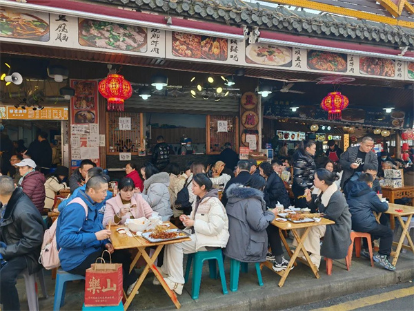 四川新闻网消息 新春佳节,乐山张公桥美食街和上中顺特色街区人潮涌动,喜气洋洋。来自各地的游客和市民纷纷聚集在此,共同品味地道的乐山美食,共度新春佳节。