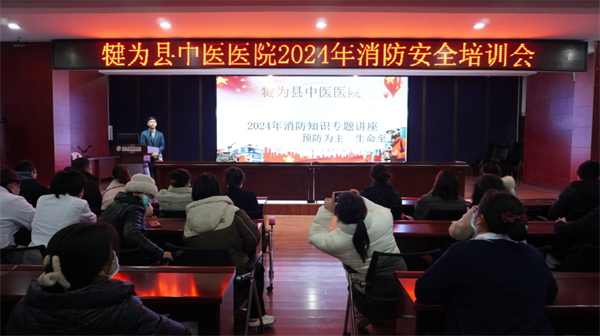 四川新闻网消息 为切实提高犍为县中医医院消防安全管理水平,强化全院职工充分认识消防安全的重要性。医院党委高度重视,于2月26日以“预防为主·生命至上”为主题,特邀请消防安全专业人员对医院全院职工开展“2024年消防安全培训演练及应急演练”。
