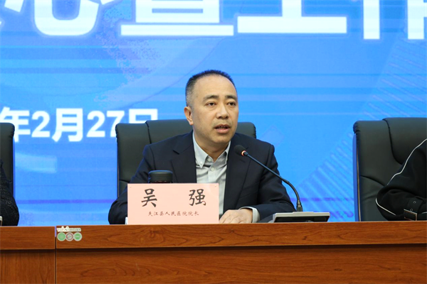 院长吴强首先传达了2024年省卫生健康委召开全省卫生健康系统党建暨党风廉政建设工作会议精神,并对医院春节期间坚守在医疗各个岗位上辛勤奉献的工作人员表示了感谢,就节后重点工作做了具体安排部署。