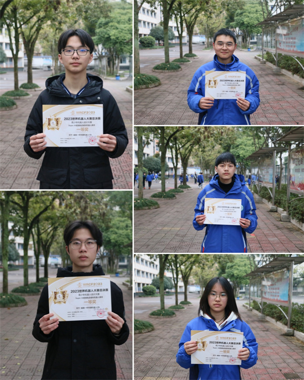 1月26日,2023世界机器人大赛总决赛在吉林省白山市盛大开幕,共有1675支队伍参加2023世界机器人Super AI超级轨迹虚拟机器人竞赛,其中,高中组共有524支队伍参赛。而峨眉一中罗俊、胡良鹏、王梓霞、李梓杰、傅雨轩5位同学在比赛中表现优异,以603.26分、602.235分、601.98分、601.73分、593.6分摘得高中组第8名,第10名,第11名,第12名,第30名,取得历史最好成绩并获得全国一等奖。据了解,本次四川队派出26支队伍,共获得6个一等奖,而峨眉一中就占了5个一等奖,为整个四川队争得了极大的荣誉。