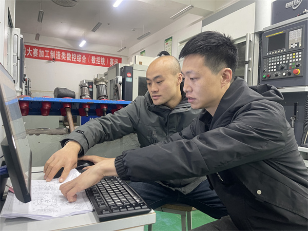 “我将在这里学习10天左右,学习数控机床的操作技能及程序编制,掌握caxa制造工程师软件和编程软件的运用。”李翔今年31岁,是眉山泓扬机械有限公司数控加工中心的一名新员工,他说,来到学校后,专业教师给予了他一对一的指导,待学有所成后,能够回归岗位,通过控制机床,制作出系统形位公差严格、尺寸精度高、加工难度大的关键零件。