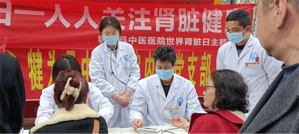 四川新闻网消息 2024年世界肾脏日主题是“人人关注肾健康:吾爱吾肾、知识强肾”。为更好地普及肾脏健康知识,加深公众对慢性肾脏病的防治意识,3月14日上午,犍为县中医医院内分泌肾病科在门诊大楼前院坝开展了“慢性肾脏病知识”义诊暨健康宣教活动,旨在呼吁大家学习肾脏养护知识,关注肾健康。