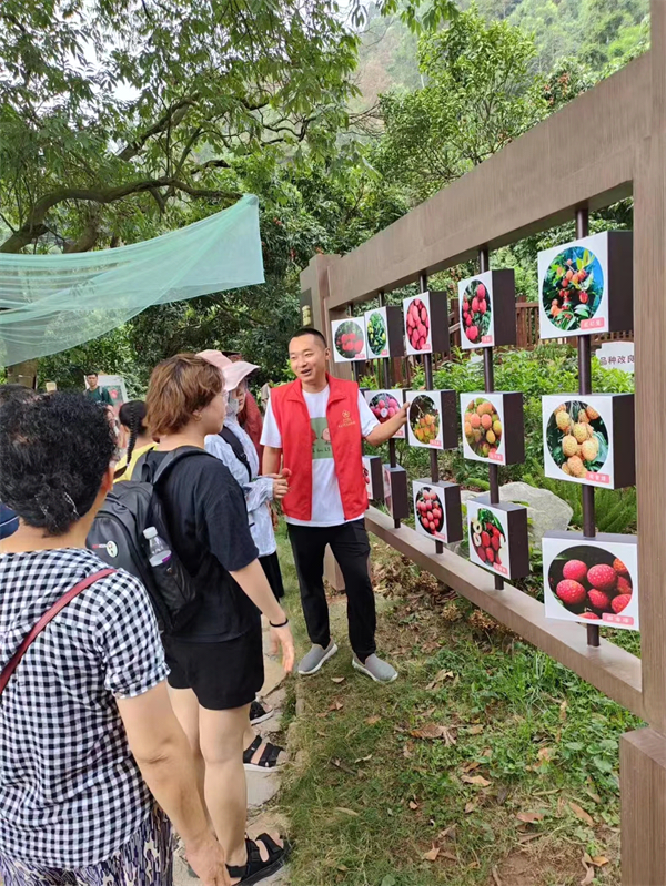 荔枝旅游文化节中志愿者为游客介绍荔枝文化