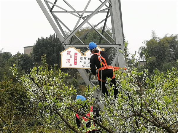 “其实我们的输电铁塔是严格按行业设计标准,并没有什么危险,不过鉴于杏林村游客较多的特殊情况,万一有人为了美照或其他原因攀爬铁塔,是可能发生安全事故。”2月初,国网乐山供电公司在调研杏林村“村网共建”情况时,专门让输电运检室对该村分布的输电线路和铁塔进行调查评估,特别是距离游客中心较近或杏林成片密集的地方注意进行测量和登记。
