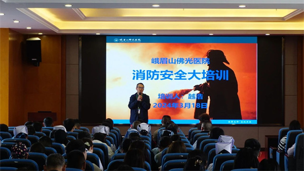 培训中,越浩指导员带来了题为《佛光医院消防安全宣讲实践》的讲座。讲座内容丰富而典型,涵盖了近期火灾事故案例分析、医院内存在的安全隐患剖析、日常管理要点解读、“四懂四会四个能力”的详细阐释以及相关法律法规的普及教育,完成了全院职工的消防安全知识考核。