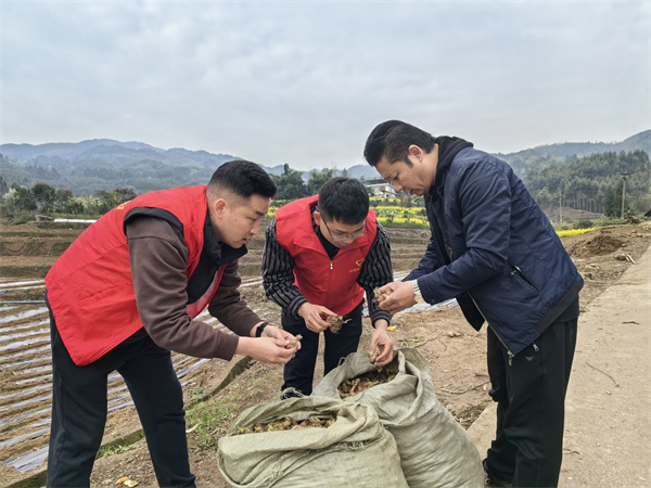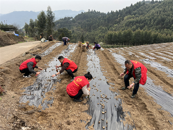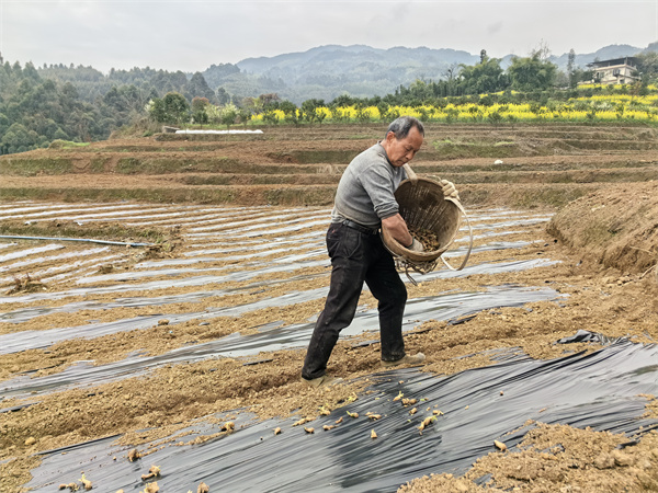 药材飘香地生“金”,走进沙湾镇王田村,玄参调运、播种工作正干得热火朝天,沙湾镇农技人员检查玄参根芽质量的同时指导玄参规范化种植,十余名农户以手中农具作笔,描绘出一幅充满希望的画卷,与不远处的油菜花融为一体,洋溢着春日独有的气息。