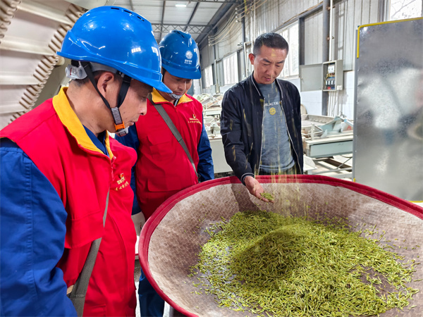 “为保证茶叶口感,茶叶采摘后第一时间进行加工,贵如金的‘明前茶’加工是最紧张也是最赶时间的,尤其需要可靠的电力保障。”赵玉庆说道。