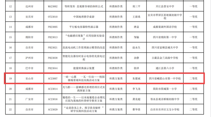 比赛中,该校高二(5)班周语欣同学在综合素质考察和现场答辩中均稳定发挥,参赛作品《菟丝子对绿植危害的研究》喜获省二等奖。该校朱儒斌老师科教方案《一砖一心愿 一瓦一行动——校园微缩景观科技教育实践活动》喜获省二等奖。