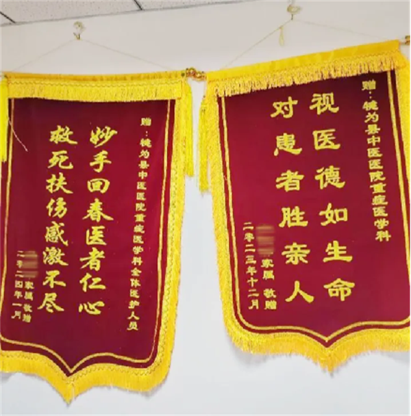 四川新闻网消息 可触摸的锦旗,传递着无法言表的情感,最真挚深沉的言辞,流露出患者对犍为县中医医院重症医学科医护人员深深的敬意。近日,犍为县中医医院重症医学科又收到锦旗,这不仅是对医护人员工作的肯定,更彰显了医患之间彼此的信任和感恩。