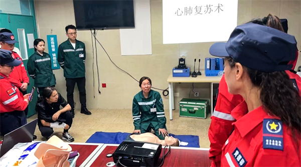 心肺复苏术是救援工作中至关重要的技能之一。急诊科医护人员通过理论讲解和模拟操作结合的方式,向救援人员教授心肺复苏术并讲解有关注意事项。医护人员不断强调判断意识、呼叫救援、胸外按压和人工呼吸等关键步骤的正确执行方法,并指出在实际操作中可能遇到的问题和应对方法。