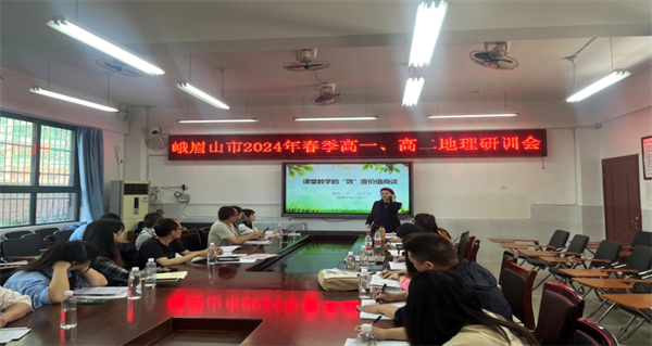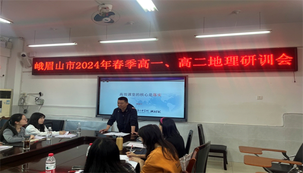 四川新闻网消息 为学习新课标、落实新课标要求,探索“融通备教学评 赋能高效课堂”,4月19日,峨眉山市高一、高二年级地理研训会在峨眉一中召开,峨眉一中宋永通老师、王华英老师献上两节精彩的示范课,峨眉一中喻学林老师、峨眉二中周施任老师做了精彩的专项培训,峨眉一中、峨眉二中、博睿特高中、文旅高中地理教师踊跃参与活动。