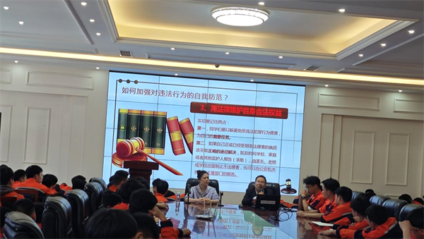 本次教育大会由汽修专业部主任沈燕和2026届年级组长苏会担任主讲。沈燕以分享名人故事的方式讲解了本次主题班会的意义,教育同学们敬畏法律、明礼守法、正确择友,并要求同学们认真学习法律知识,提高自身法治观念,对违法犯罪说“不”!