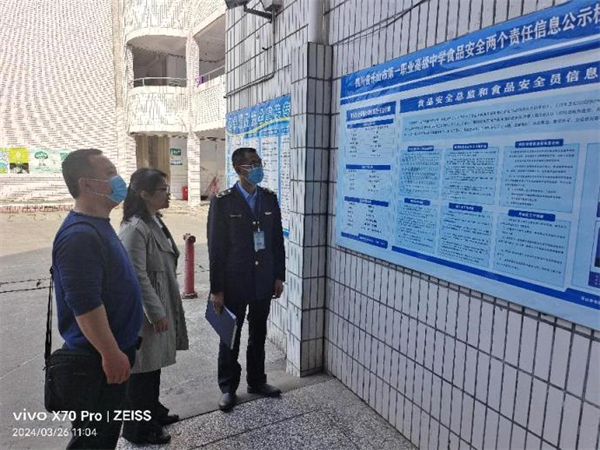经过检查,赖所长与食品安全总监、食堂安全员进行交流,强调学校食堂安全的重要性,一定要重视细节,加强食品安全管理,落实食品安全主体责任,筑牢食品安全防线,为师生“舌尖上的安全”保驾护航。(供稿:乐山一职中)