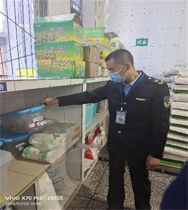 近日,乐山市市中区市场监管局海棠一所所长赖星东率员来到乐山一职中食堂进行食品安全监督检查。