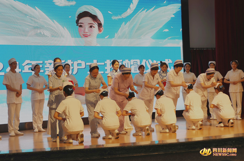 活动现场还为新护士举行了授帽仪式,护理前辈亲手为新入职护士戴上洁白燕尾帽。这一庄严而浪漫的环节象征着护理事业的传承与发展,也标志着新的一批护理工作者开启了他们职业生涯的新篇章。
