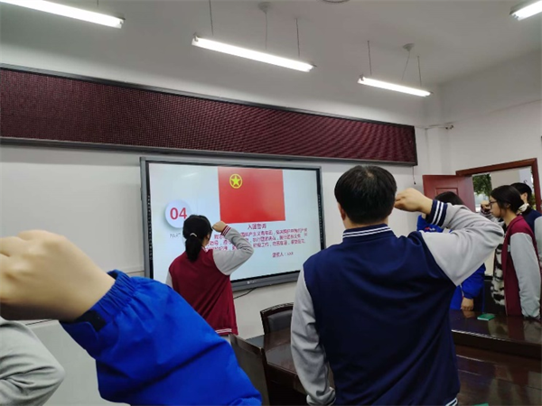 新团员们分别为彼此佩戴好团徽,并进行入团宣誓。