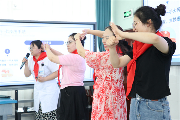活动现场生动形象地讲解了洗手对于预防疾病的重要性。现场邀请学生一起演示七步洗手的正确方法,随后开展现场提问、有奖竞答等趣味活动。小朋友们踊跃参与,气氛热烈。