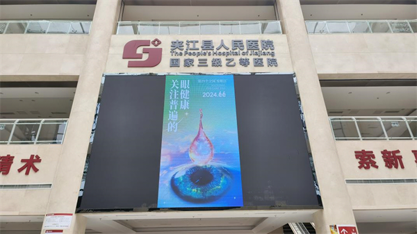 在医院LED和大屏幕上播放此次活动宣传标语,积极营一个关注眼健康、珍爱视力的良好氛围。