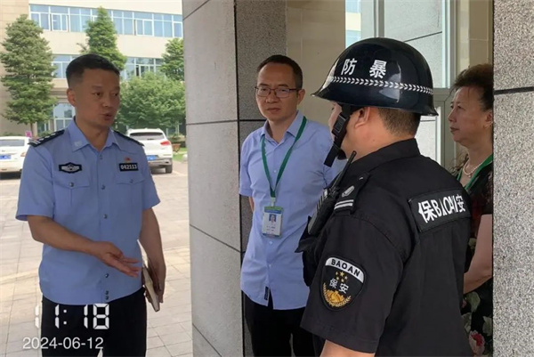 四川新闻网消息 6月12日,峨眉山佛光医院专门邀请峨眉山市公安局治安大队大队长苟平、中队长黎文林等3名警官莅临医院,对医院治安保卫管理工作进行指导性检查。医院党支部书记、院长张昌明、工会主席兼后勤保障科主任权渝及后勤保障科干事韩敏全程陪同。