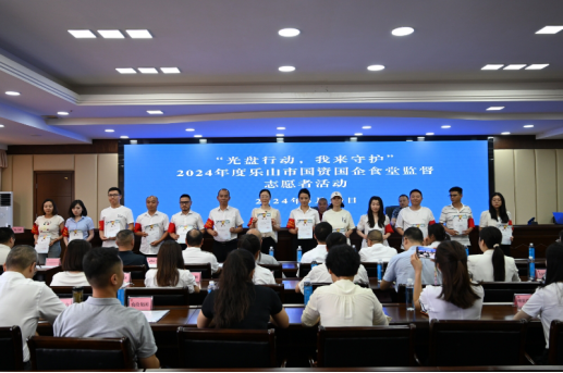 四川新闻网消息 反对餐饮浪费,厉行勤俭节约。6月19日下午,乐山市国资国企食堂监督志愿者活动在乐山市国资委如期举行,活动中,乐山市13家市属国有企业代表现场签订了《制止餐饮浪费承诺书》,乐山市国资委二级调研员文力生为2024年乐山市国资国企食堂监督志愿者颁发聘书。现场还举行了2023年度食堂监督志愿者为新一届志愿者佩戴志愿者袖标仪式。