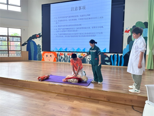 近日,急诊科医护人员携急救教具前往犍为县博瑞特幼儿园和金色伟才(国际)幼儿园进行急救理论及技能培训。培训内容包括:“成人及儿童心肺复苏术”“气道异物梗阻解除术(即海姆立克法)”“高热惊厥患者紧急处置流程”,以及如何正确拨打120急救电话等。