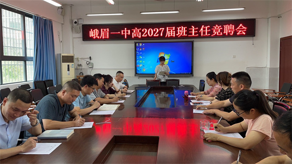 四川新闻网消息 为确保2027届班级管理的顺利进行,峨眉一中于7月7日下午在会议室召开2027届班主任团队竞聘会。会议由政教主任马奎主持,学校全体行政和部分班主任代表参与打分。