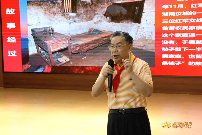 开营仪式活动现场,两位红领巾讲解员分别讲述了《成都战役·竹园铺战斗》和《乐山红色记忆·永利川厂》的故事,带领大家重温了那段峥嵘岁月。五老宣讲团团长宋国治还为大家讲述了《半条被子的故事》,让在场的青少年们深刻感受到了革命先烈的伟大精神和崇高品质。五老志愿者和福利院儿童们带来了歌曲表演《万疆》与朗诵《少年强则国强》,用嘹亮的声音表达了对祖国的热爱和对未来的憧憬。