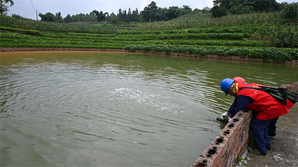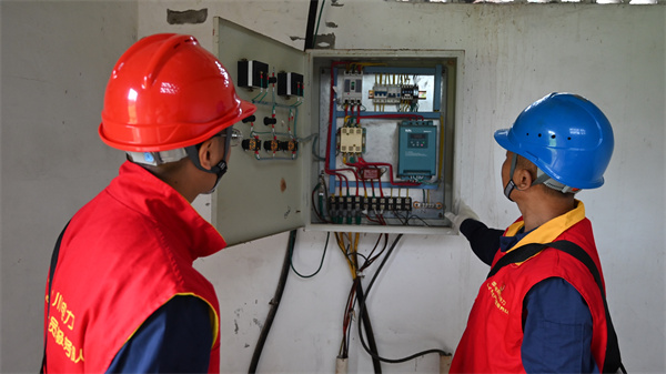 红阳村受地形地貌限制,水资源相对匮乏,基本靠从红阳水库抽水到村里的蓄水池进行农业灌溉。为确保农户农业生产用电安全可靠,国网乐山供电公司新华供电服务站结合当前农业生产和农户用电需求,组织连心桥共产党员服务队对红阳村的提灌站和涉农线路全面开展巡视检查,对发现的安全隐患逐一登记及时消缺整改,确保线路设备健康运行。
