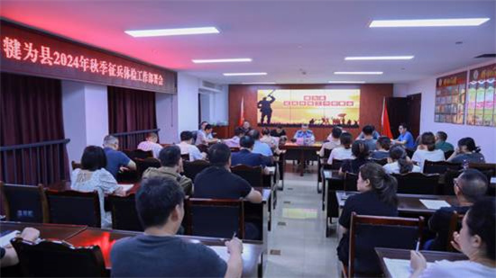 四川新闻网消息 铮铮铁骨,逐梦军旅。7月31日下午,犍为县2024年秋季征兵体检工作部署会在县人民医院召开。县人武部副部长杨辉,县纪委监委驻县卫生健康局纪检监察组组长周正华,县卫生健康局机关党委书记杨建,县人民医院领导班子及相关体检人员30余人参会。