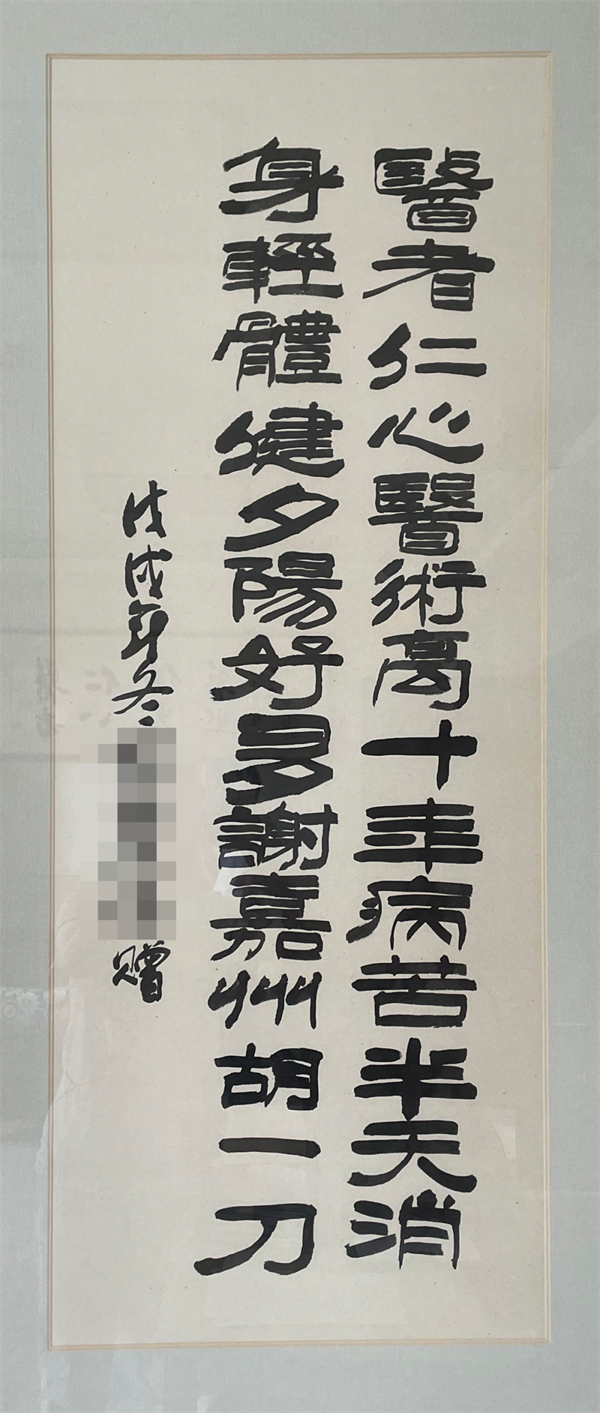 “医者仁心医术高,十年病苦半天消;身轻体健夕阳好,多谢嘉州胡一刀。”这是悬挂在胡红强办公室的一幅书法。金杯银杯不如老百姓的口碑,而这正是患者对胡红强的褒奖。从三江汇流的古嘉州到仙山脚下的佛光医院,作为肝胆胰外科名声在外的“胡一刀”,胡红强表示,作为一名老共产党员,他看中的是佛光医院这个团队的先进性,愿意为老百姓服务的为民情怀。