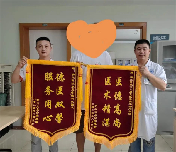 阴先生亲自将2面锦旗递交到医生手中道:“非常感谢车主任,感谢主管老师,我的右膝疼痛已经超过两年了,刚入住科室时,连下蹲和行走这些普通的动作都异常困难,现在这些动作对我来说都不是问题。”话到哽咽处,他已经满含热泪。