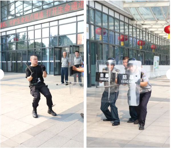 医院安保人员立即启动反恐应急预案,迅速形成第一道防线,使用防暴器材对其进行有效控制,同时立即向医院反恐应急指挥部及公安机关报告。