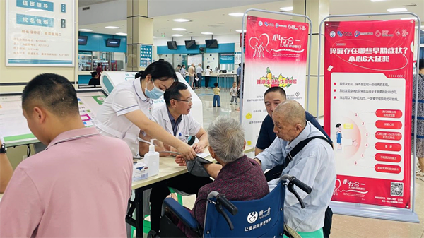 义诊现场,心血管内科医护人员为群众解答疑惑,发放宣传单,免费为他们进行查体、血压测量、诊治疾病,还向群众普及心脏疾病的预防知识,强调保持健康生活方式的重要性,如合理饮食、适量运动、戒烟限酒等。