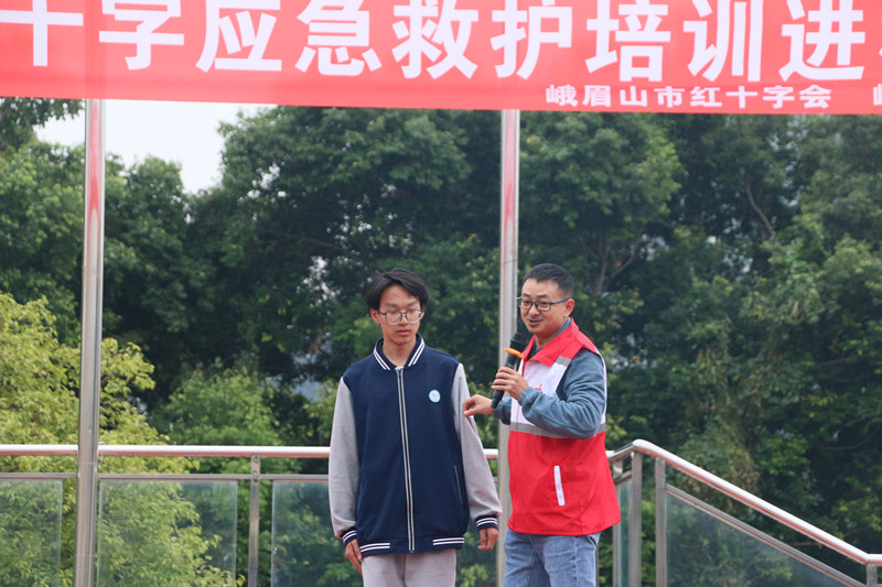为进一步提升学生的安全意识及自救与互救技能,峨眉一中于10月24日举办了一场具有特色的应急救护培训活动。此次活动特别邀请了峨眉山市红十字会的应急救护专业人员到校,他们给学生们深入讲解了心肺复苏术、自动体外除颤器(AED)的正确使用方法以及气道异物梗阻的急救措施等基础救护知识。