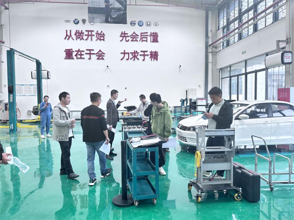 随后,在乐山一职中汽修专业教师吴小军和阳斌的带领下,与会成员对市技能大赛赛场工位进行了观摩。
