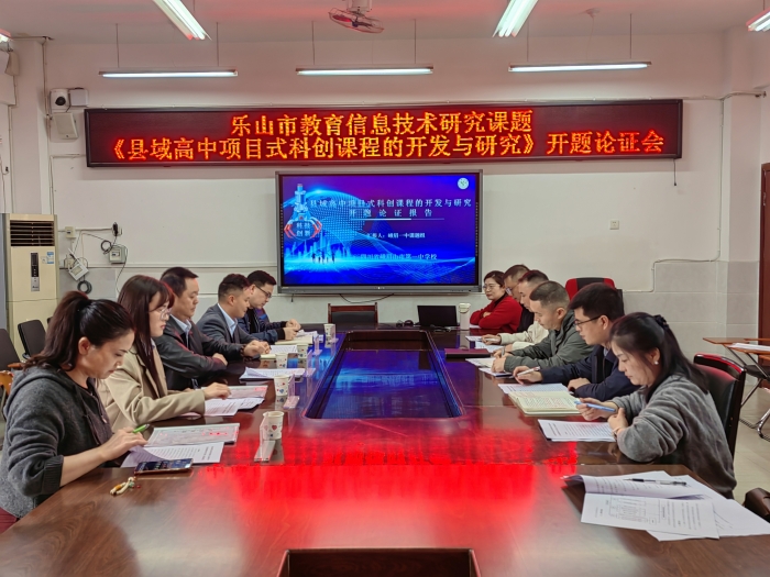11月6日,乐山市教育技术装备处、峨眉山市装备站课题专家卢泽松、王宁、陈欣、帅建红、刘玉一行5人到峨眉一中就该校申报立项的乐山市教育信息技术研究课题《县域高中项目式科创资源的研究与应用》进行现场开题论证。