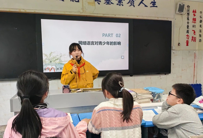 近日,乐山市实验小学六年级开展了“清朗・规范网络语言文字使用”主题班会,旨在加强学生语言文明教育,传承中华优秀语言文化。
