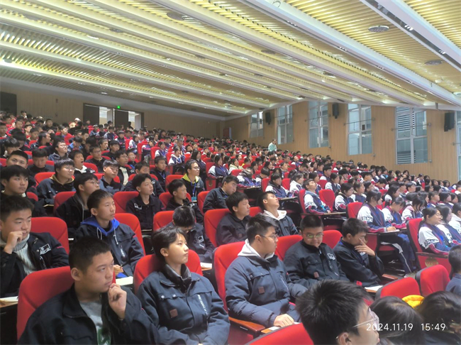 九三学社乐山市委会副主委、乐山市体育局局长李志强,校长何晓明,九三学社乐山市委会委员、副校长范惠文出席活动。九三学社乐山市促进创新工作委员会成员、乐山一职中计算机和机械专业近400名高一学子怀揣着对知识的渴望,共赴这场思想盛宴。