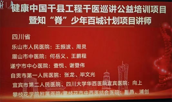 会上,乐山市人民医院康复医学科成功通过知脊少年百城计划培训项目的认证。康复医学科的王振波和周灵两位治疗师受聘为培训项目讲师,我们将致力于青少年脊柱健康管理与疾病救治,进一步整合优质医疗资源,提升专业技术水平,为广大青少年提供更精准、更高效的脊柱侧弯康复矫正服务。