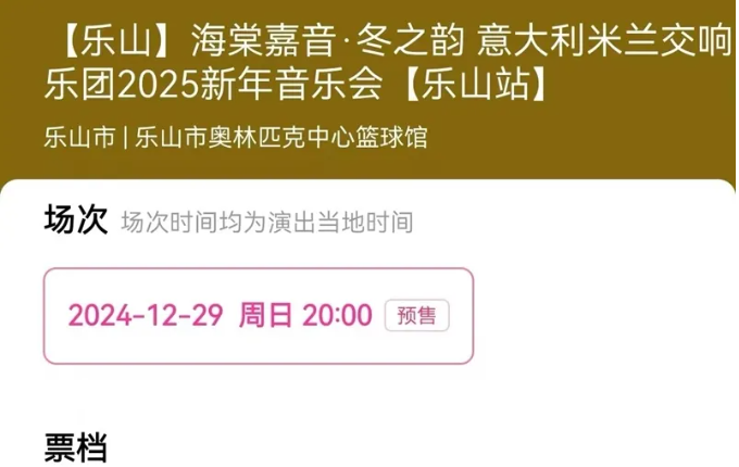 12月18日,记者在购票平台大麦网了解到,“海棠嘉音·冬之韵”意大利米兰交响乐团2025新年音乐会门票正式开启预售,市民可登录大麦网官方网站或手机APP购票。