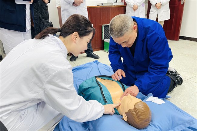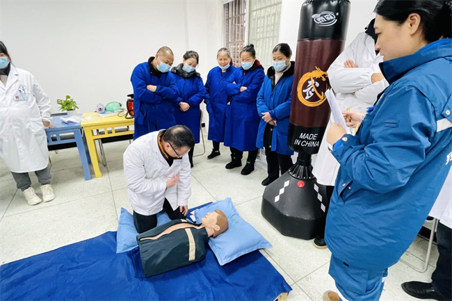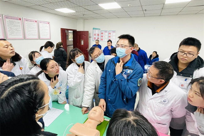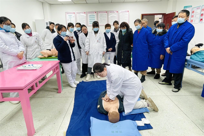 12月24日,犍为县人民医院医务科、护理部、急诊科等相关医务人员在精神科院区开展急救技能培训,指导医务人员进行环甲膜穿刺和气管插管操作,对精神科全体医务人员、护工进行心肺复苏培训和技能考核。