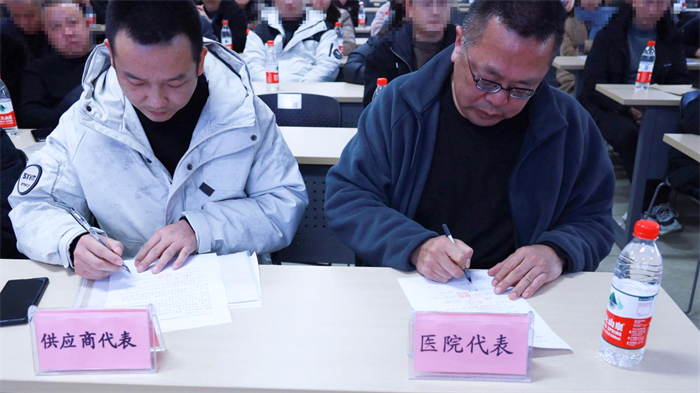 医院党委委员、副院长段永建与供应商代表签订《医院采购廉洁购销协议》。