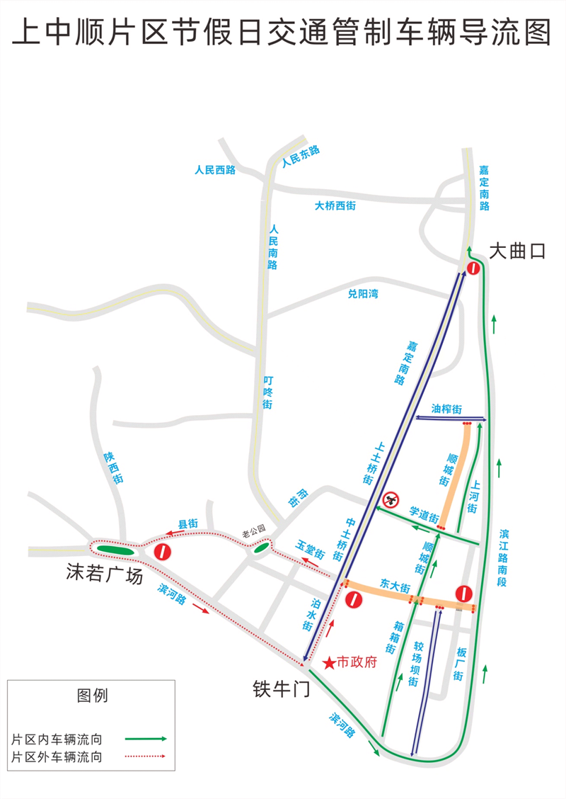 市中区以岷江一桥、岷江二桥、岷江三桥、岷江四桥、致江路大桥为骨架搭建城区交通大循环,通过潮汐式单向通行、限行禁行等措施,分离过境交通车流,减少景区道路交通总量。同时,针对上中顺片区、绿心片区、万达商圈等重点区域,组织小循环交通,优化交通组织,提高通行效率。例如,上中顺片区通过单向通行措施和步行街管理,有效缓解了交通拥堵;绿心片区通过绿心环线分流,避免了交通拥堵;万达商圈通过设置单行道和即停即走落客区,提高了车辆通行效率。