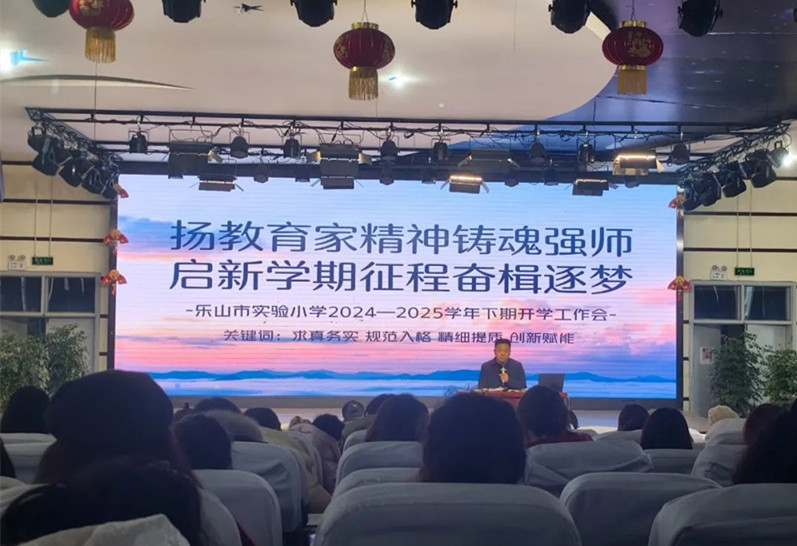 岁月的长河,从不停息;奋斗的征程,永远向前。每一位实小教师,都蕴藏着奔腾的力量;每一位实小教师,都拥有照亮世界的光芒。2025年2月11日,乐山市实验小学全体教师在星空剧场召开新学期开学工作会,校长赵清华提出了“求真务实、 规范入格、 精细提质 、创新赋能 ”的工作理念,为学校新学期的发展指明方向。