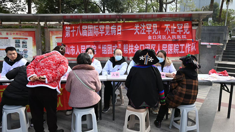 乐山市人民医院对口支援金口河区人民医院医疗队也同时开展了多学科义诊活动。基层医疗工作者作为守护群众健康的第一道防线,不仅要承担繁重的日常诊疗工作,还要肩负起向群众普及罕见病知识的重任,为基层群众的健康保驾护航,让每一位患者都能得到及时、有效的诊疗。