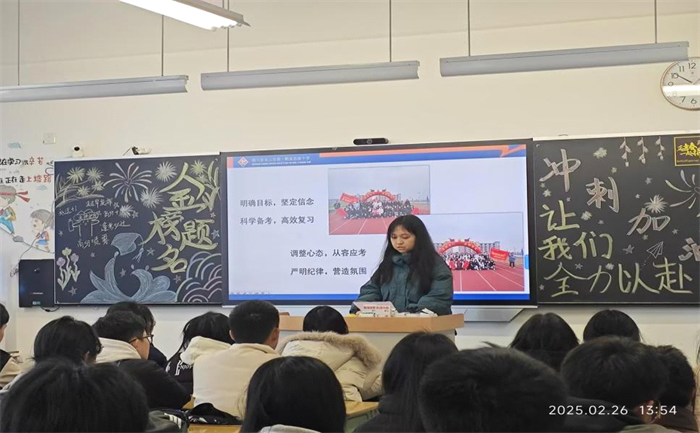 其次,陈韫老师希望同学们在最后的冲刺阶段,科学规划时间,查漏补缺,以最佳状态迎接考试。同时,提出以平常心对待,既要全力以赴,也要保持理性心态,高考是人生的重要转折点,但并非唯一出路,不管单招结果如何,都要微笑面对。