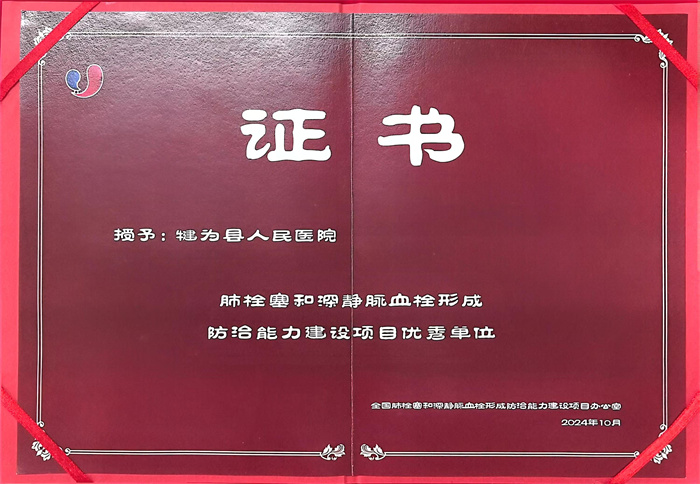 2024年荣获全国肺栓塞和深静脉血栓形成防治能力建设项目优秀单位