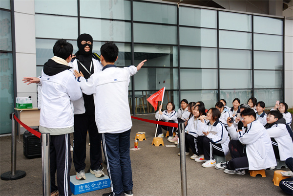 同学们参加了有趣的航空科普课程。在教室里,教员通过图文并茂的PPT、生动形象的动画演示,深入浅出地讲解了飞机的飞行原理和低空应用,并向同学们展示抗荷服、氧气面罩和飞行头盔。同学们积极参与互动,踊跃回答问题,教员还邀请部分同学试穿试戴飞行服、氧气面罩和头盔,现场气氛十分热烈。临近中午时分,机场还为大家准备了别出心裁的飞行表演,用航空人独有的方式向同学们表达热烈又浪漫的欢迎。