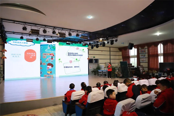 3月17日,在第33届“世界水日”及第38届“中国水周”即将来临之际,乐山市实验小学二年级5班,6班孩子们迎来了一场超有趣的节水科普小讲堂,乐山电力自来水公司的叔叔阿姨们用好玩又神奇的方式,在孩子们的心中种下了节水的绿色小种子。